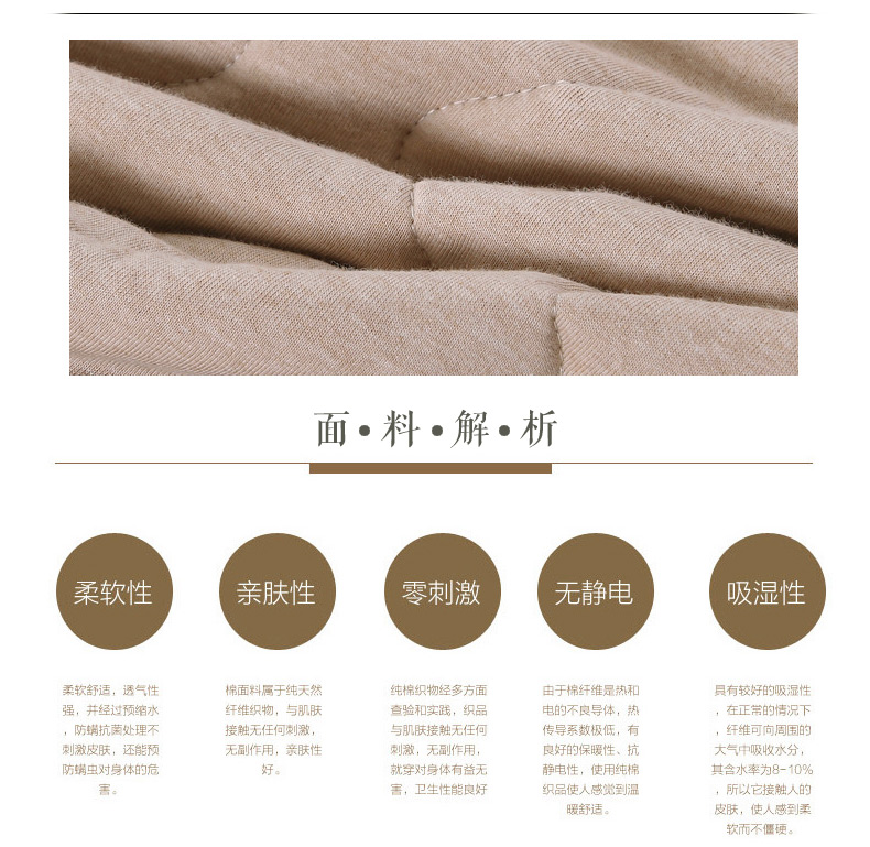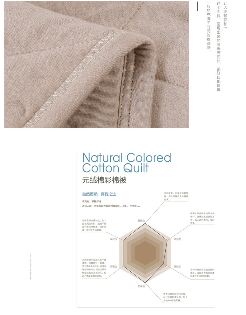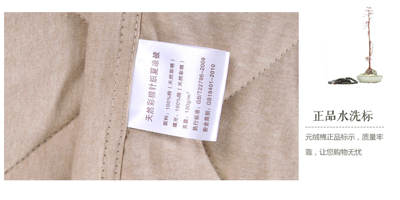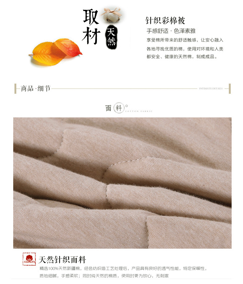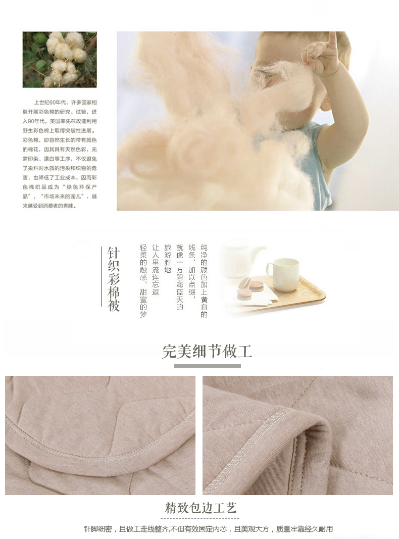 产品名称: 彩棉针织棉绗缝被填充物为彩棉盖毯 夏被规格齐全