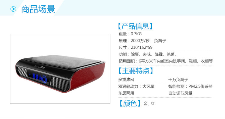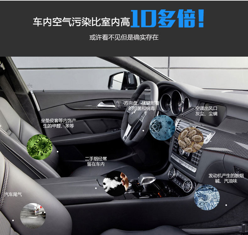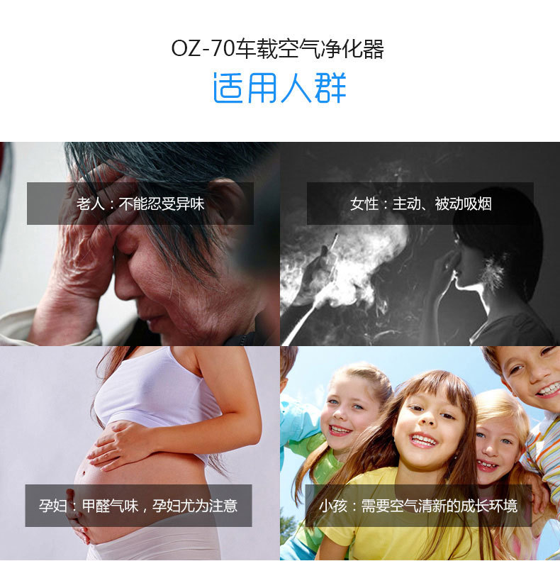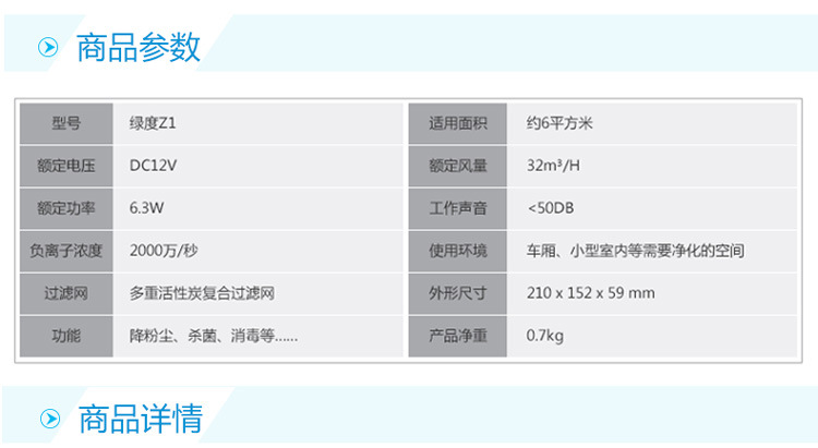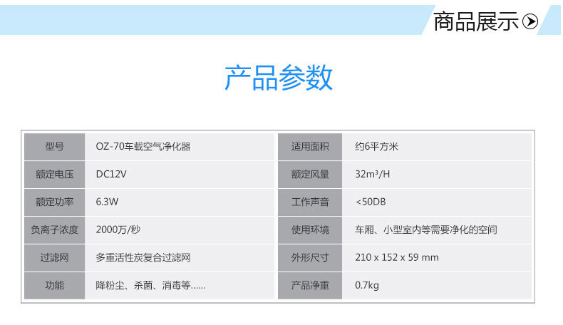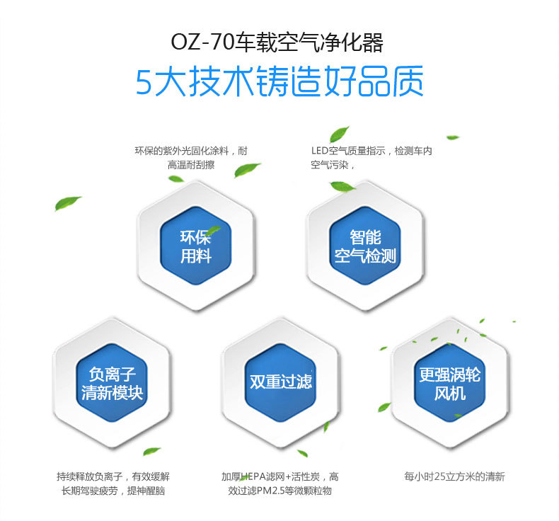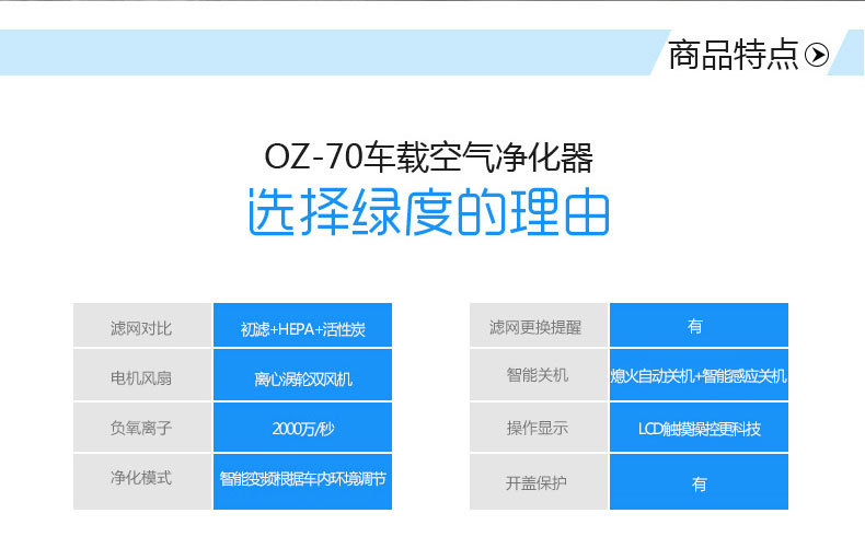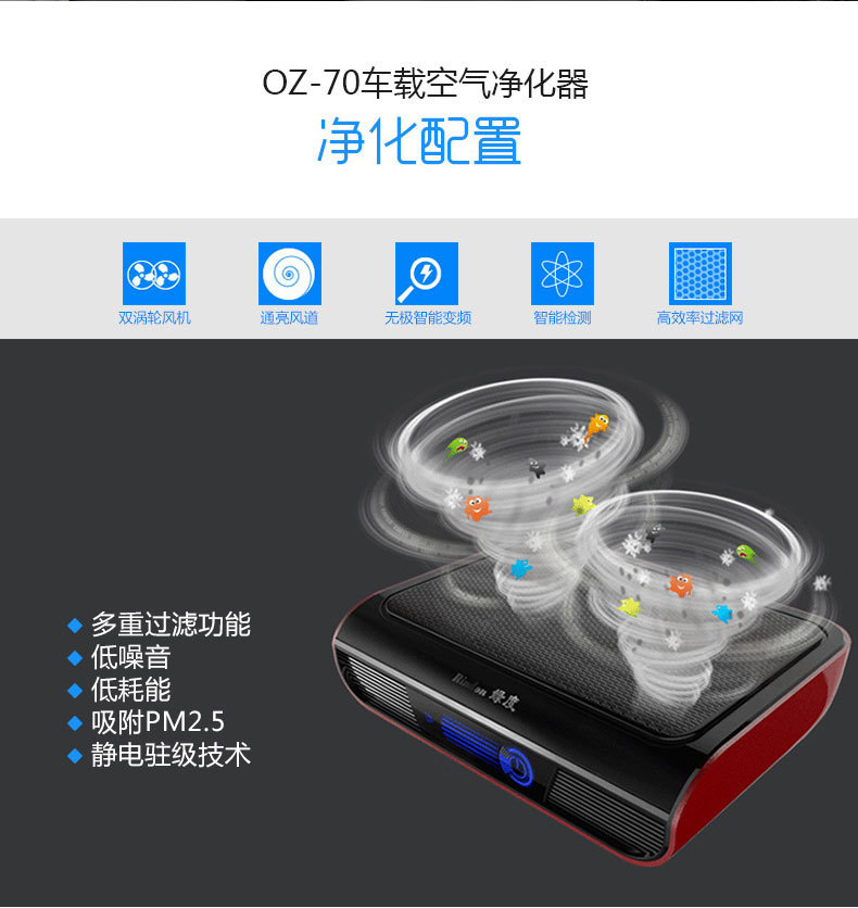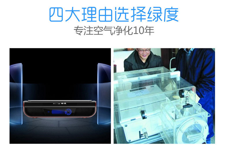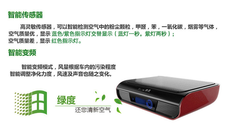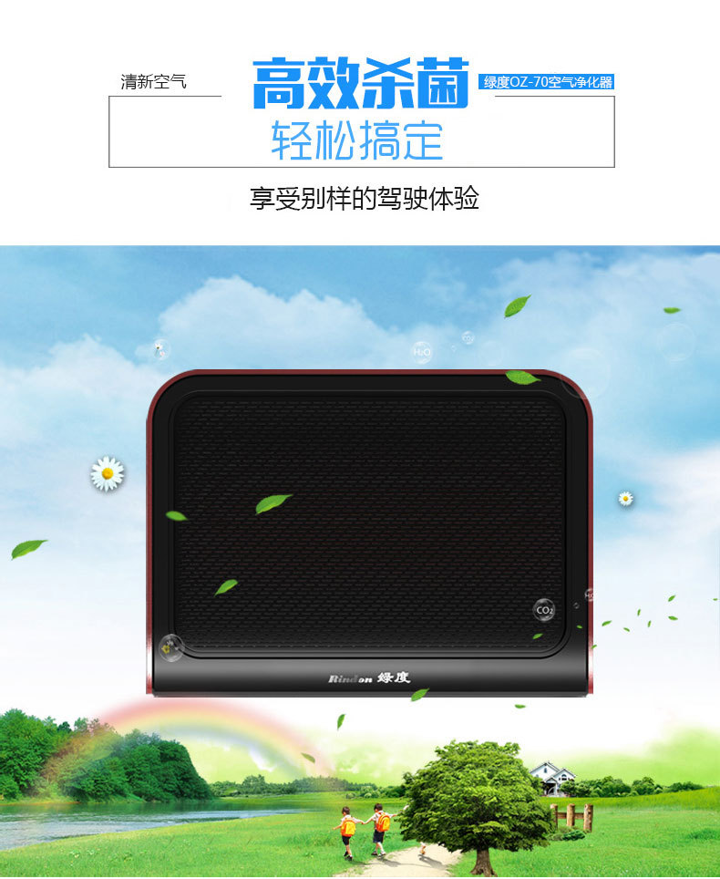 绿度汽车空气净化器车载 智能检测 双涡轮大风量 臭氧oz-70