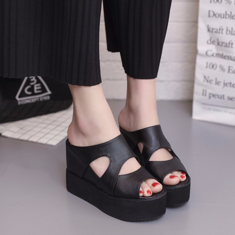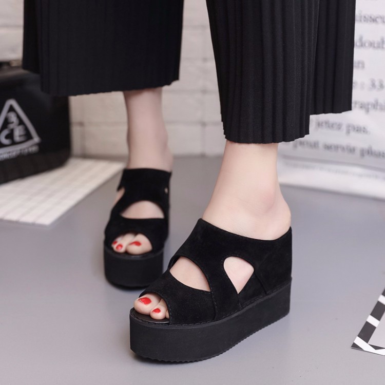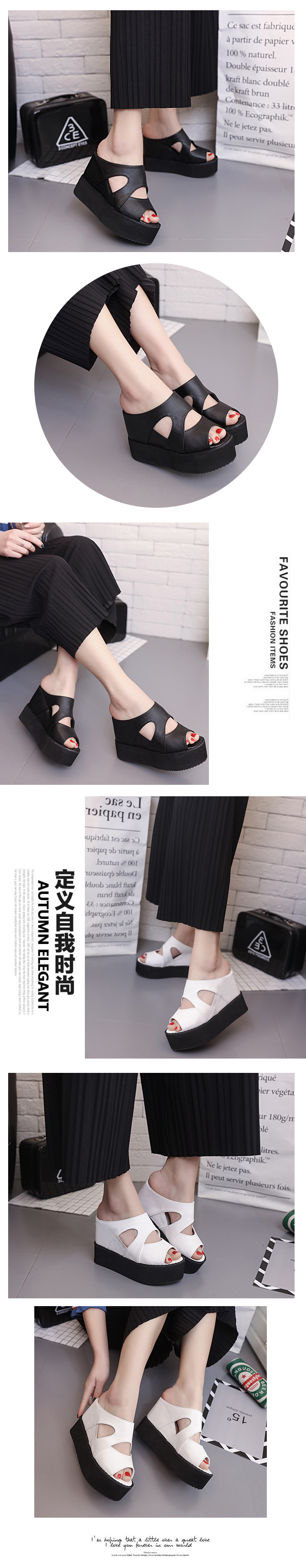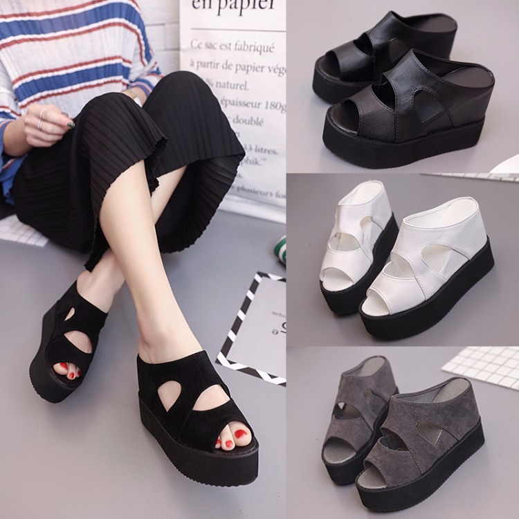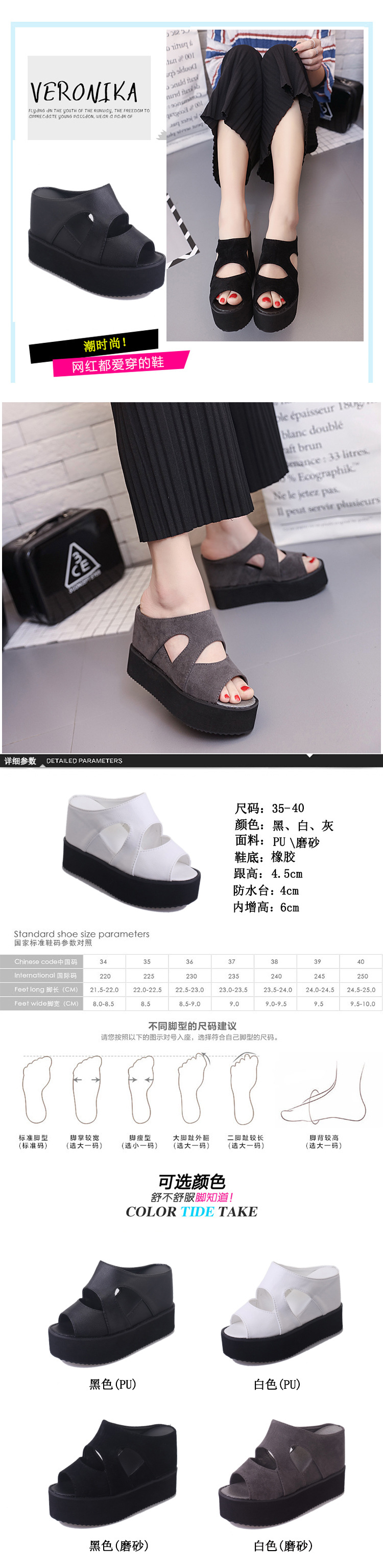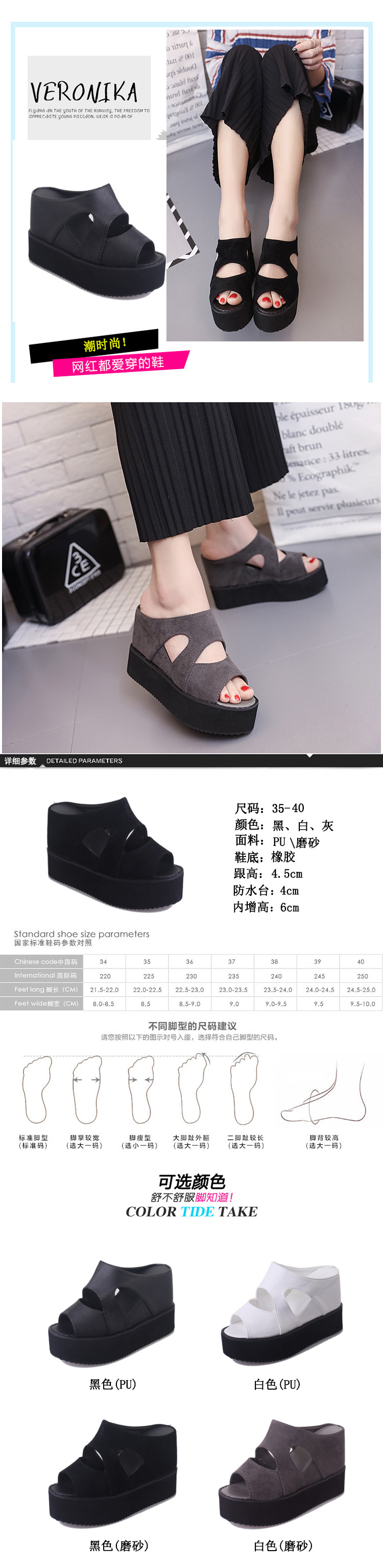 2017春夏新款欧美露趾鱼嘴凉靴女厚底松糕跟镂空内增高罗马女鞋A511