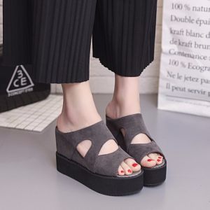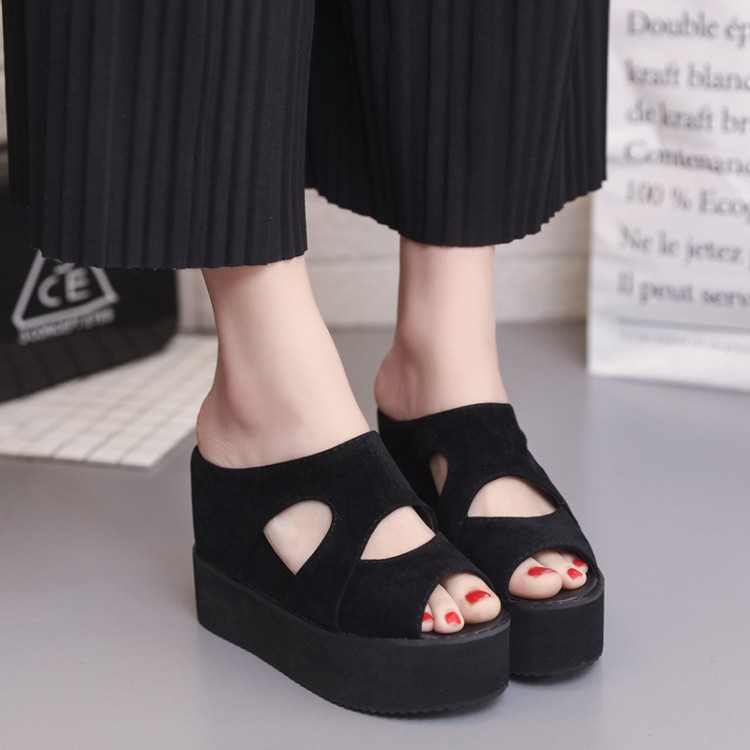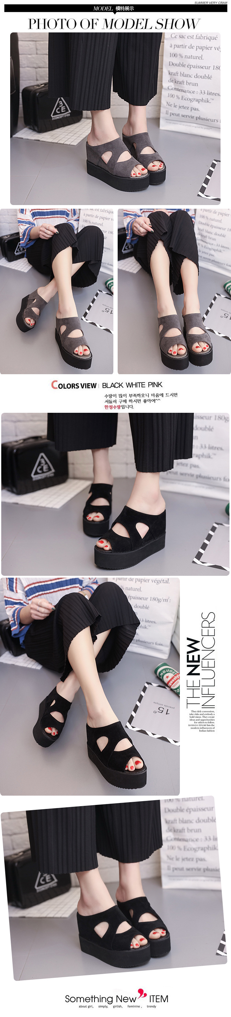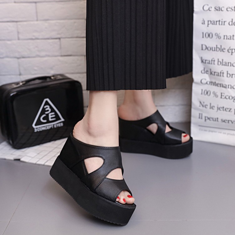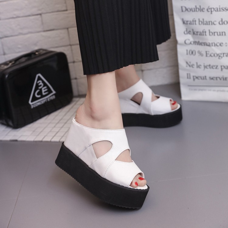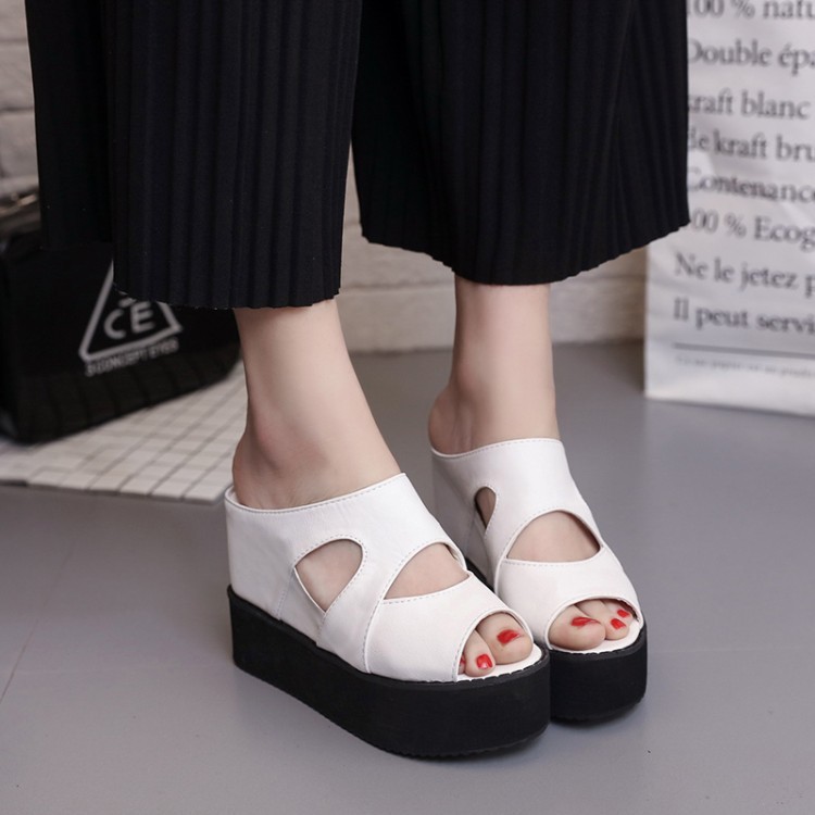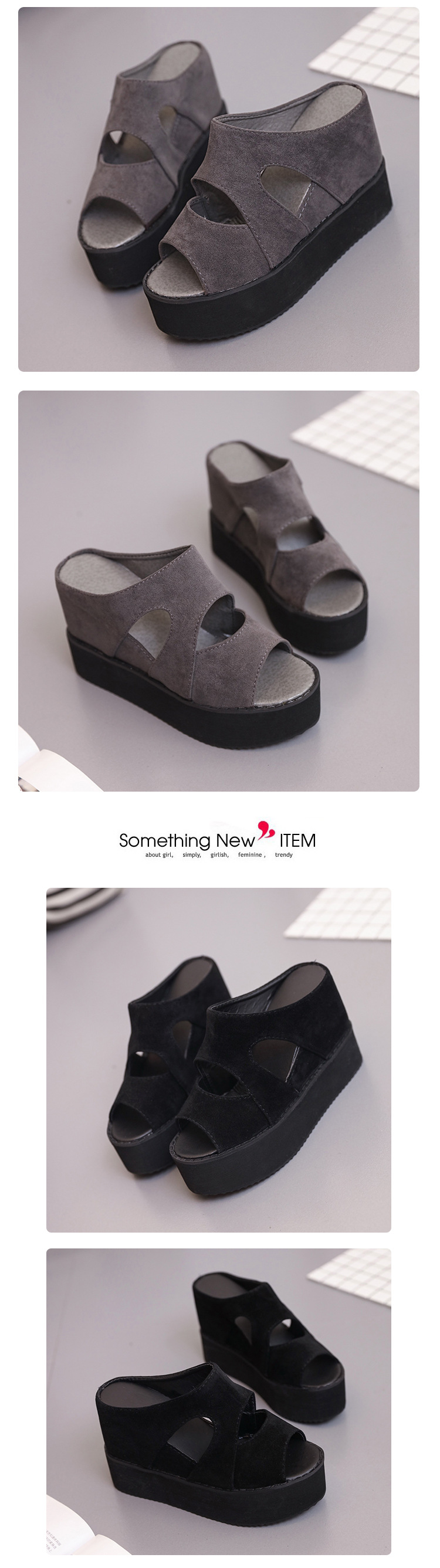 2017春夏新款欧美露趾鱼嘴凉靴女厚底松糕跟镂空内增高罗马女鞋A511