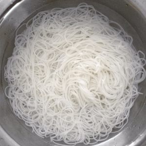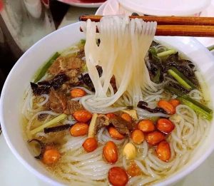 米粉,汉族特色小吃,是中国南方地区非常流行的美食。米粉以大米为原料,经浸泡、蒸煮和压条等工序制成的条状、丝状米制品,而不是词义上理解的以大米为原料以研磨制成的粉状物料。米粉质地柔韧,富有弹性,水煮不糊汤,干炒不易断,配以各种菜码或汤料进行汤煮或干炒,爽滑入味,深受广大消费者(尤其南方消费者)的喜爱。米粉品种众多,可分为排米粉、方块米粉、波纹米粉、银丝米粉、湿米粉和干米粉等。它们的生产工艺大同小异,一般为:大米— 淘洗 — 浸泡 — 磨浆 — 蒸粉 — 压片(挤丝)—复蒸 — 冷却 — 干燥 — 包装 — 成品。