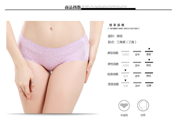 双宝内衣品牌拉丝无痕舒适透气中腰提臀内裤女士三角烧花内裤8954K