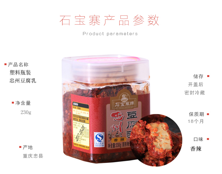 重庆特产石宝寨牌忠州豆腐乳230g塑料瓶装香辣