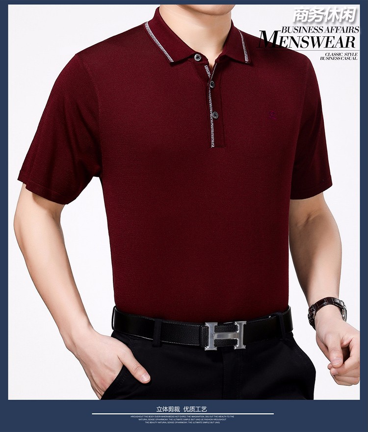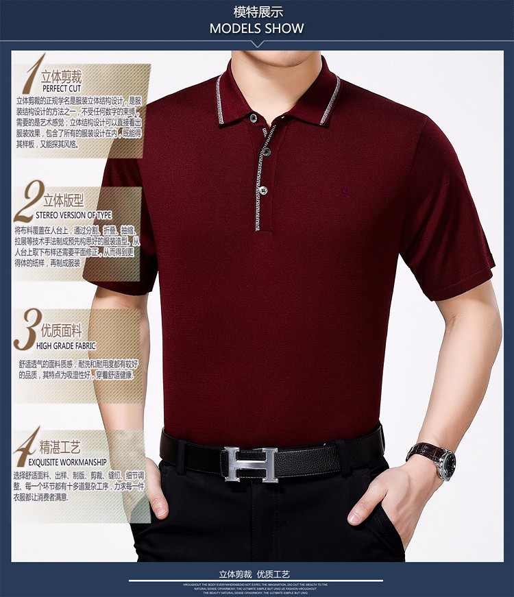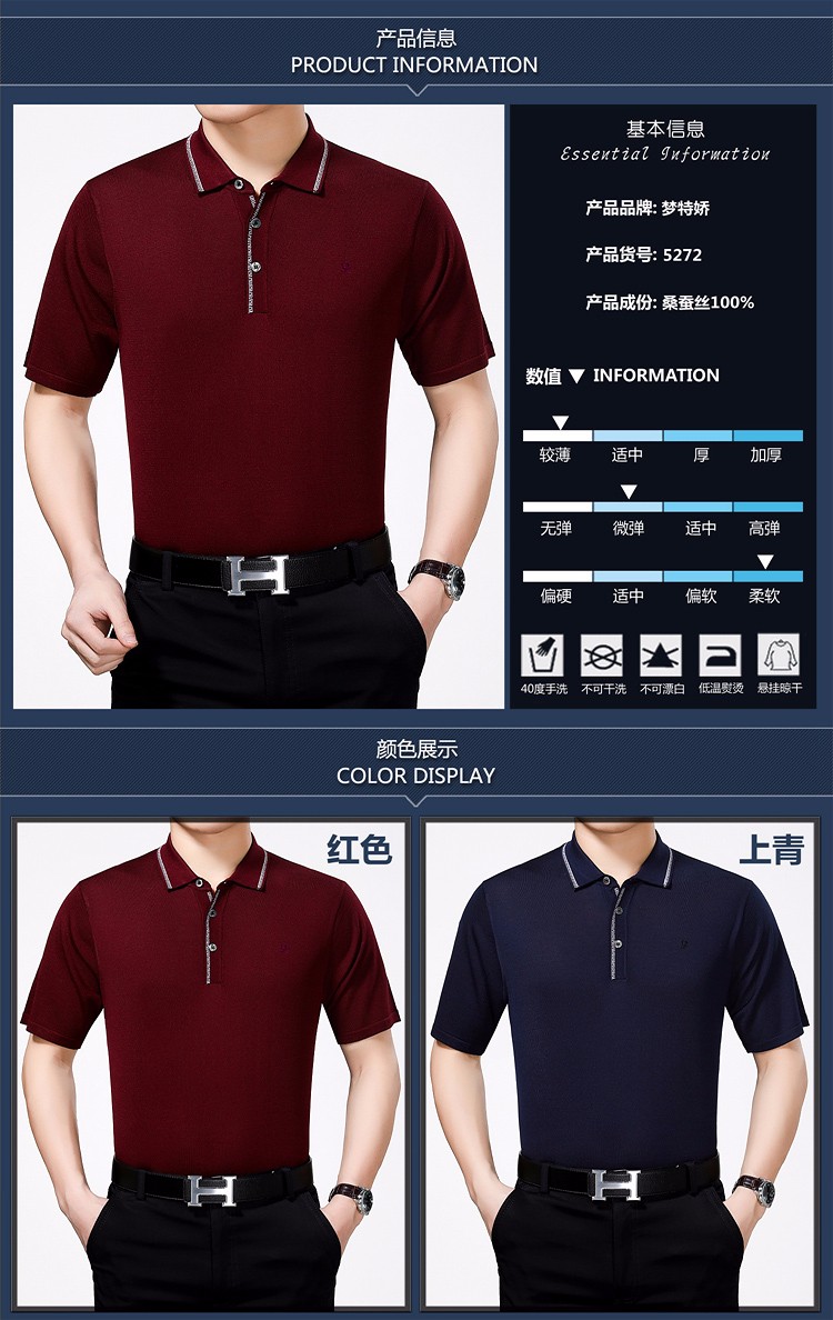 梦特娇男士短袖t恤2017新款夏季薄款男翻领商务爸爸正品T恤衫