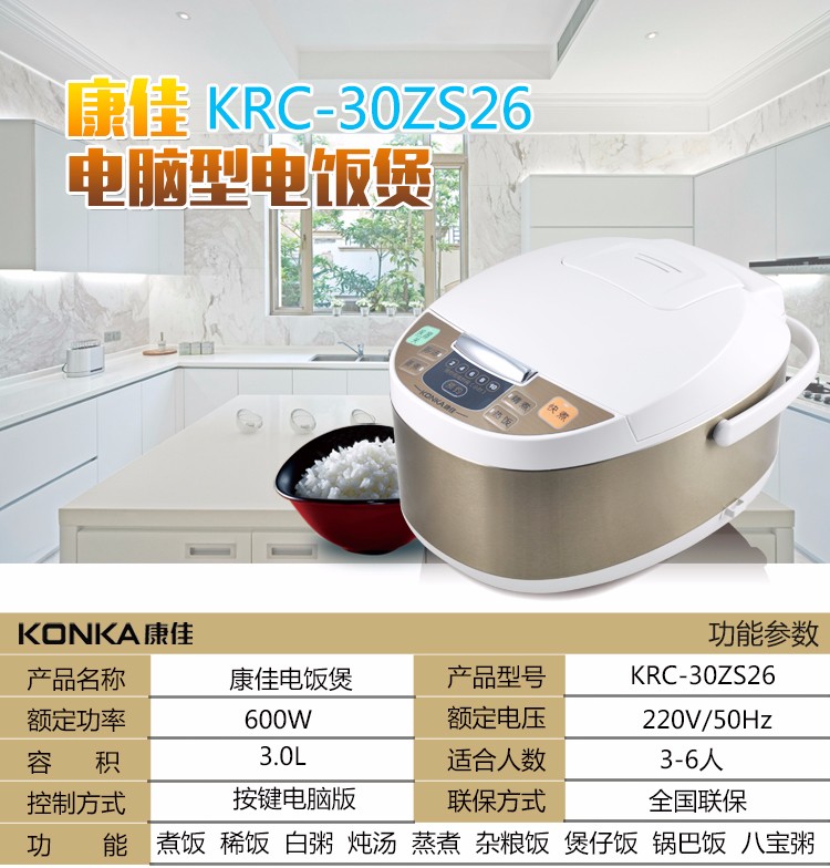 点击查看Konka/康佳 KRC-30ZS26电饭煲智能正品电饭锅家用2-3-4-5-6人3L