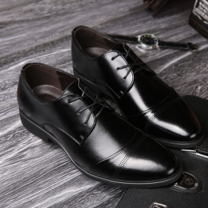 德欧老头 秋冬加绒保暖男士正装商务皮鞋 英伦真皮尖头男鞋系带工作单鞋 1212-1