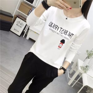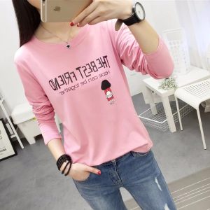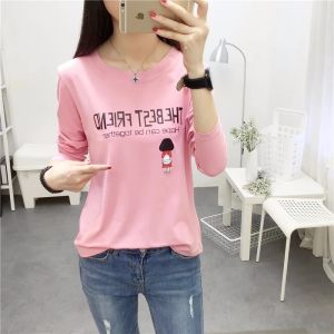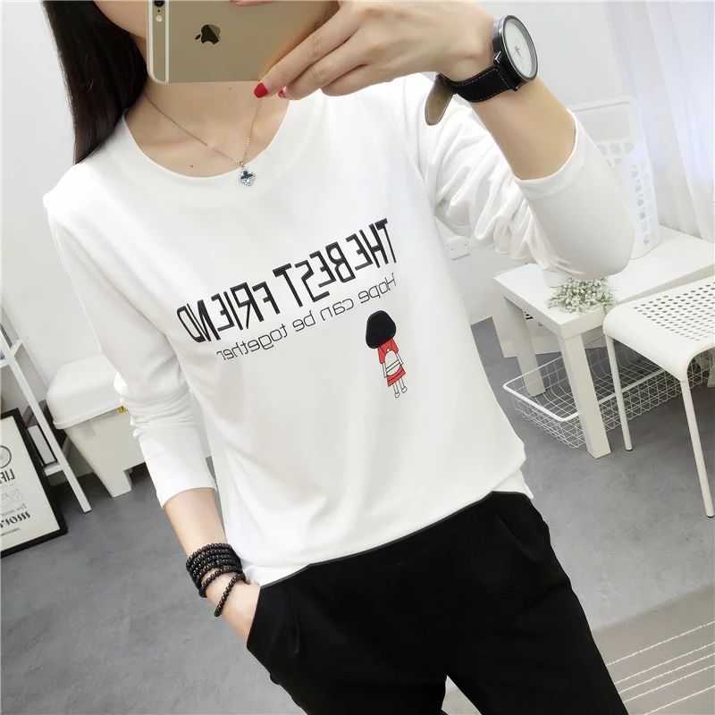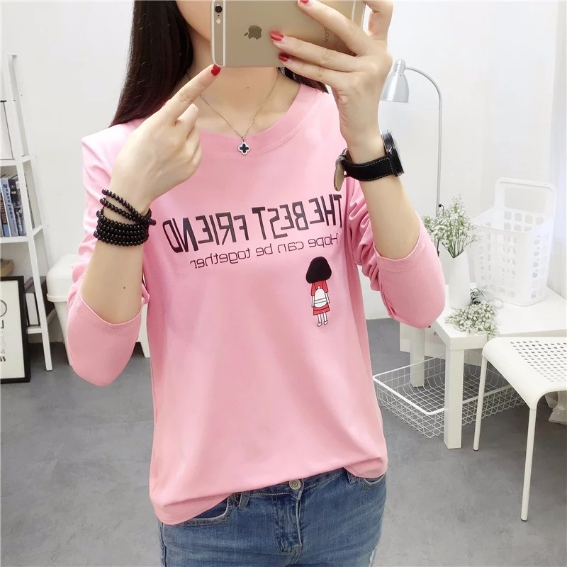 长袖t恤女秋冬装韩版卡通印花宽松初中学生上衣服百搭大码打底衫