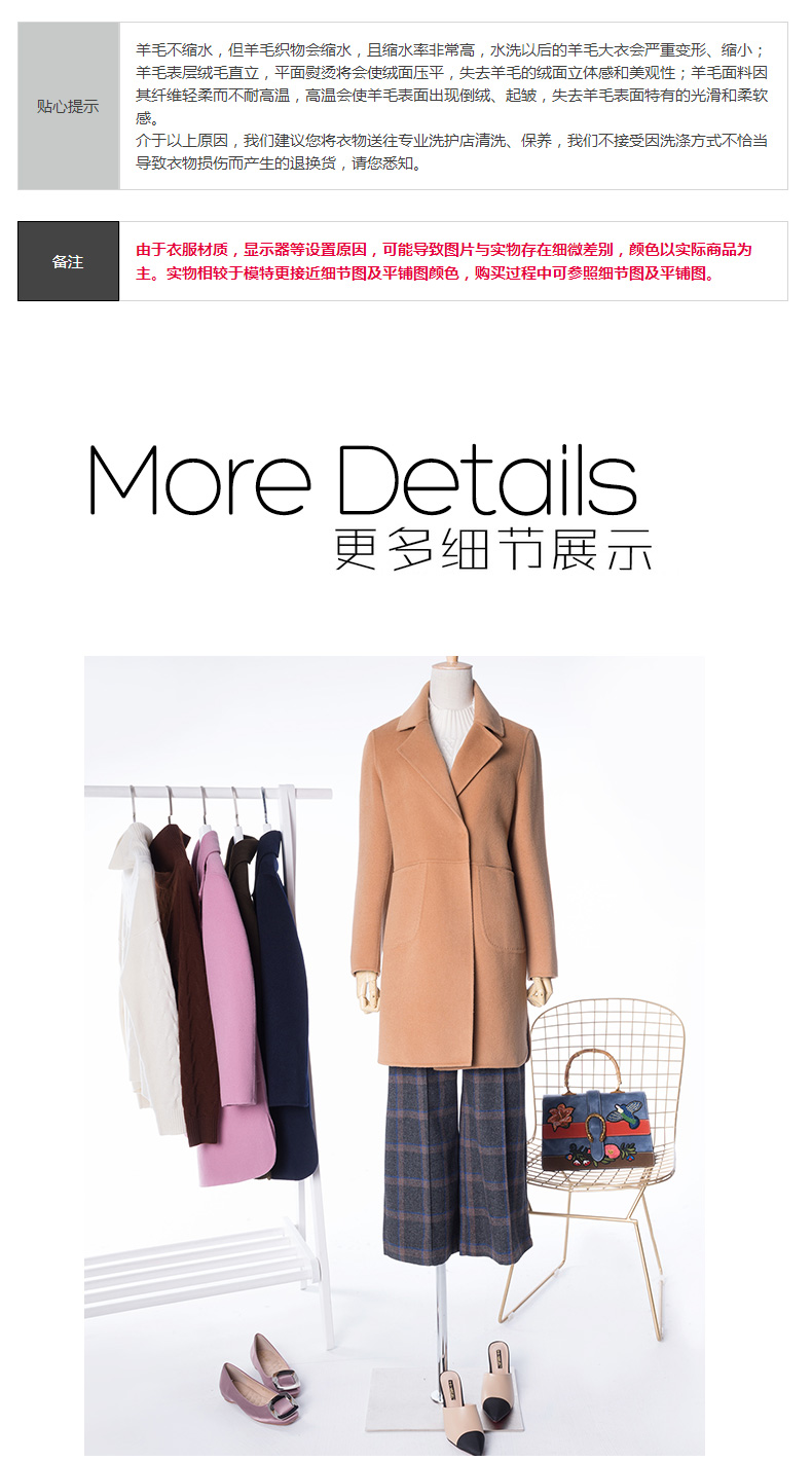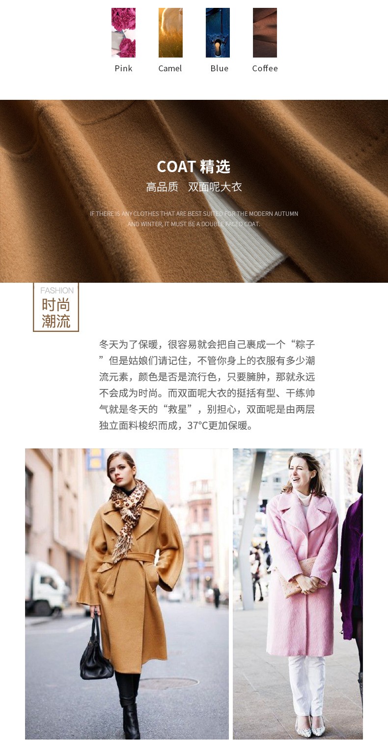 - 颜色: 藏蓝色/粉色/深咖色/驼色
