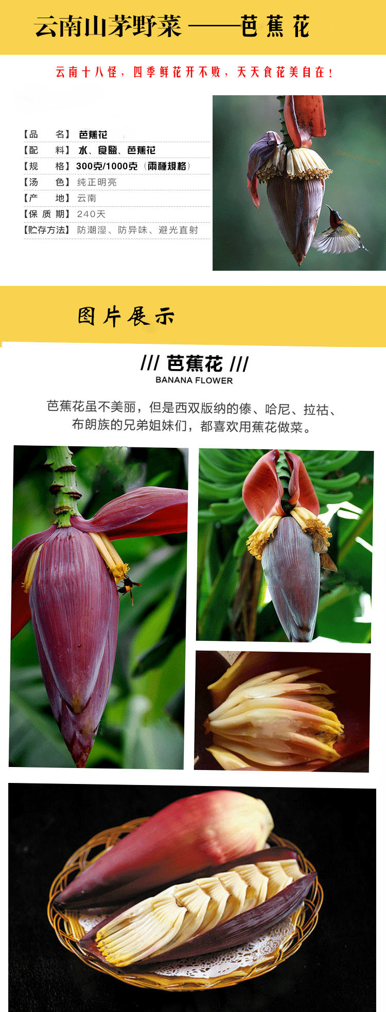 云南特色美食鲜花芭蕉花300克/袋 一件30袋