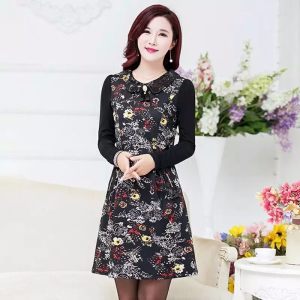 35岁妈妈装秋季大码中老年妇女装妈妈显瘦打底裙长袖印花连衣裙子