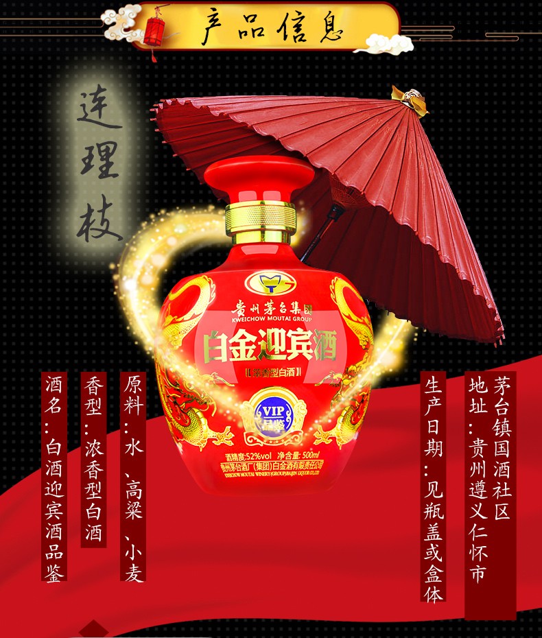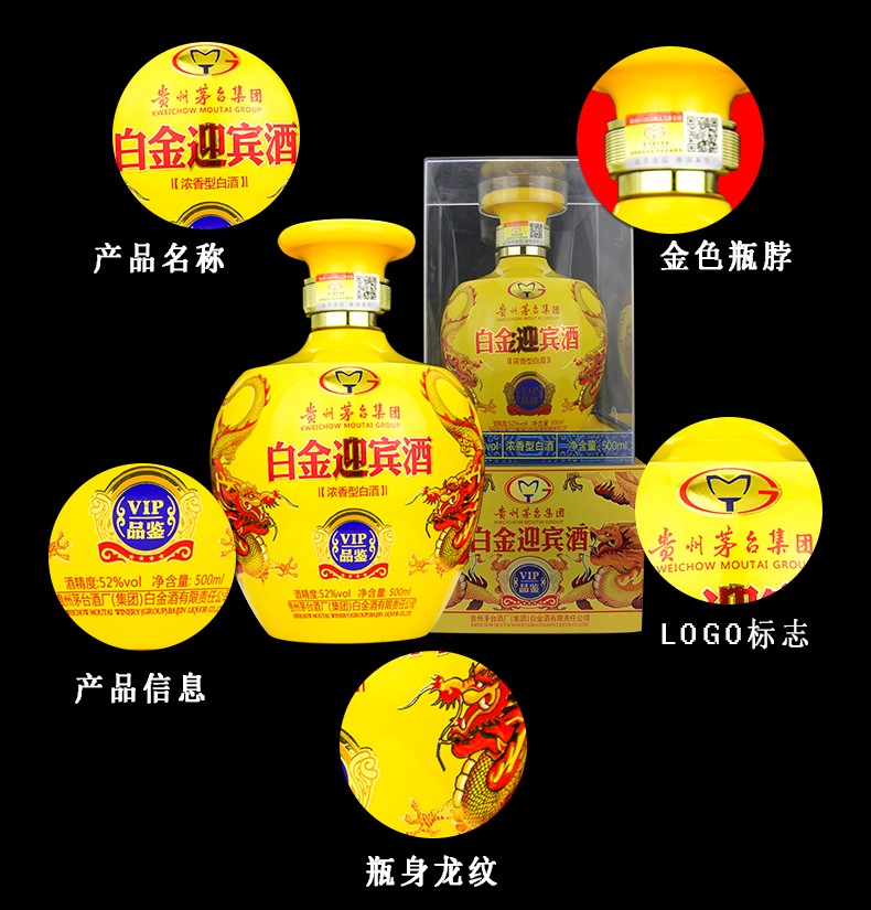点击查看贵州茅台集团白金酒公司白金迎宾酒品鉴黄 鉴红52度浓香型白酒