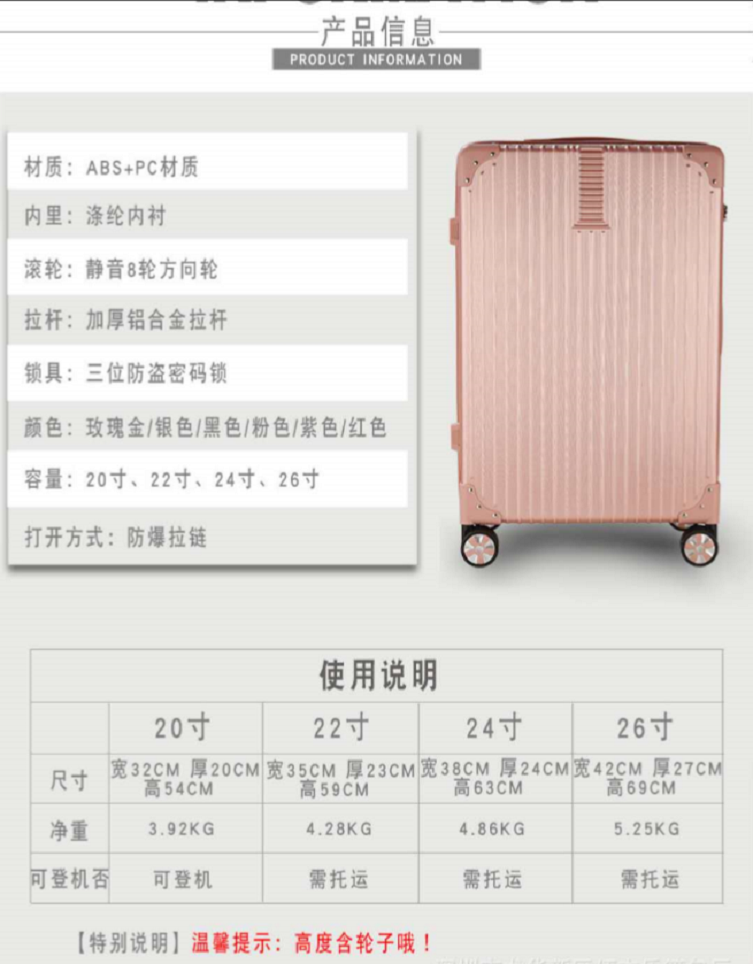 - 颜色: 粉红色/黑色/红色/玫瑰金/银色/紫色