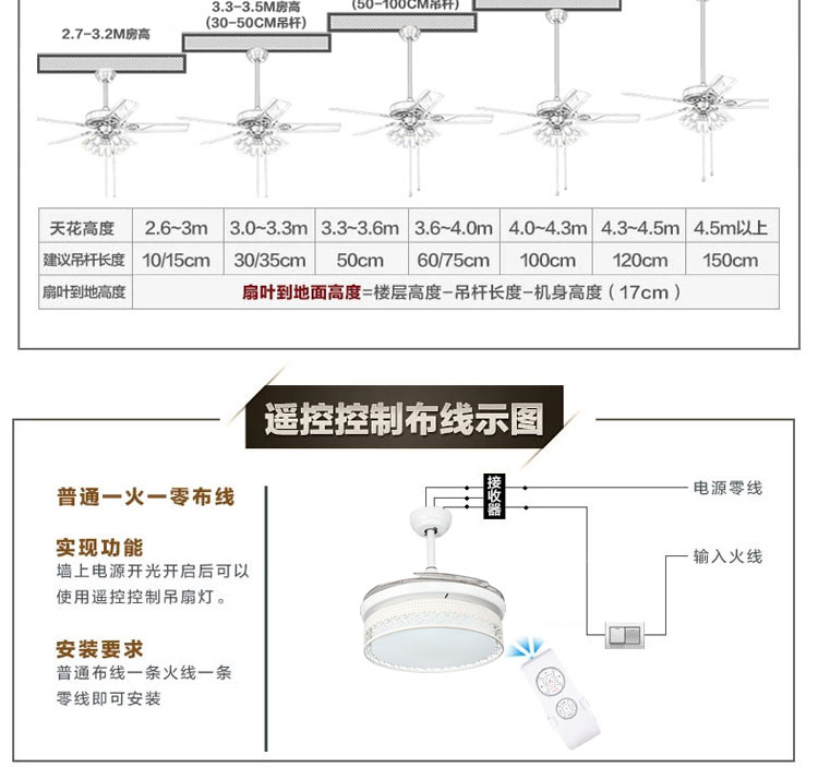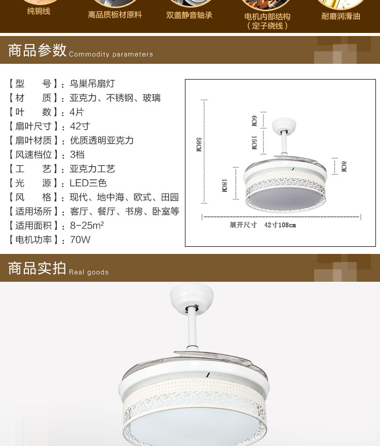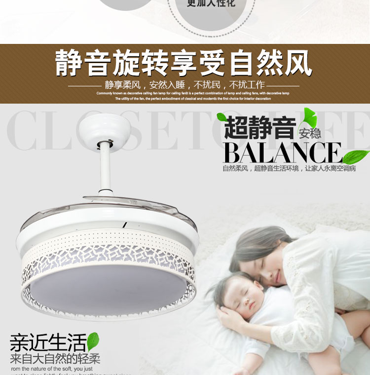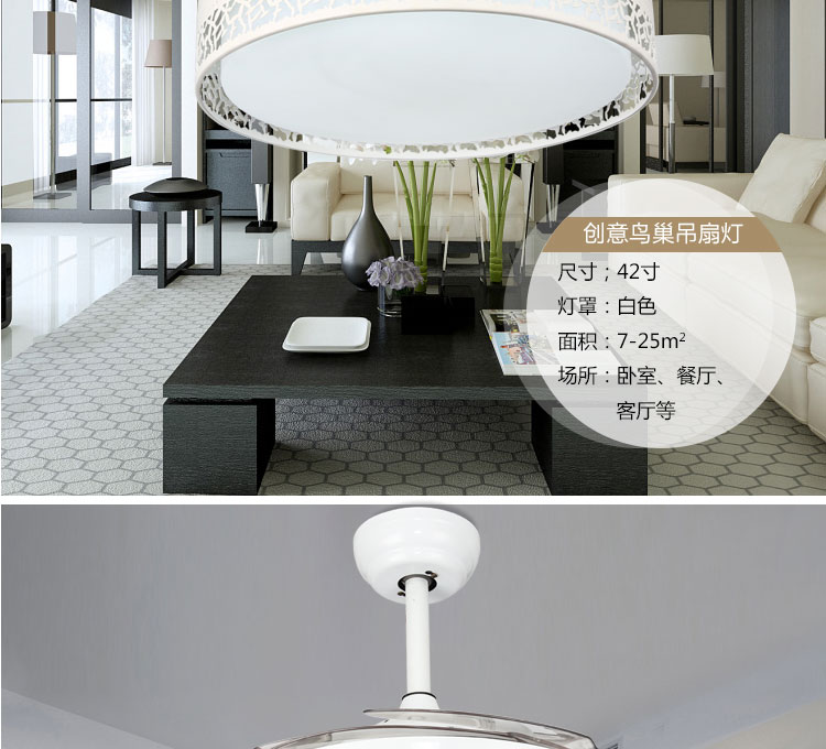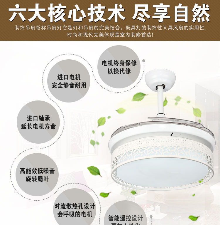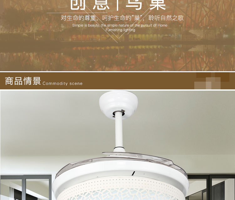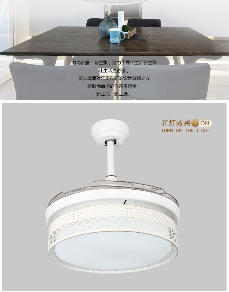 摩咔特 现代简约大气家居客厅餐厅卧室书房LED三色36W吊扇灯