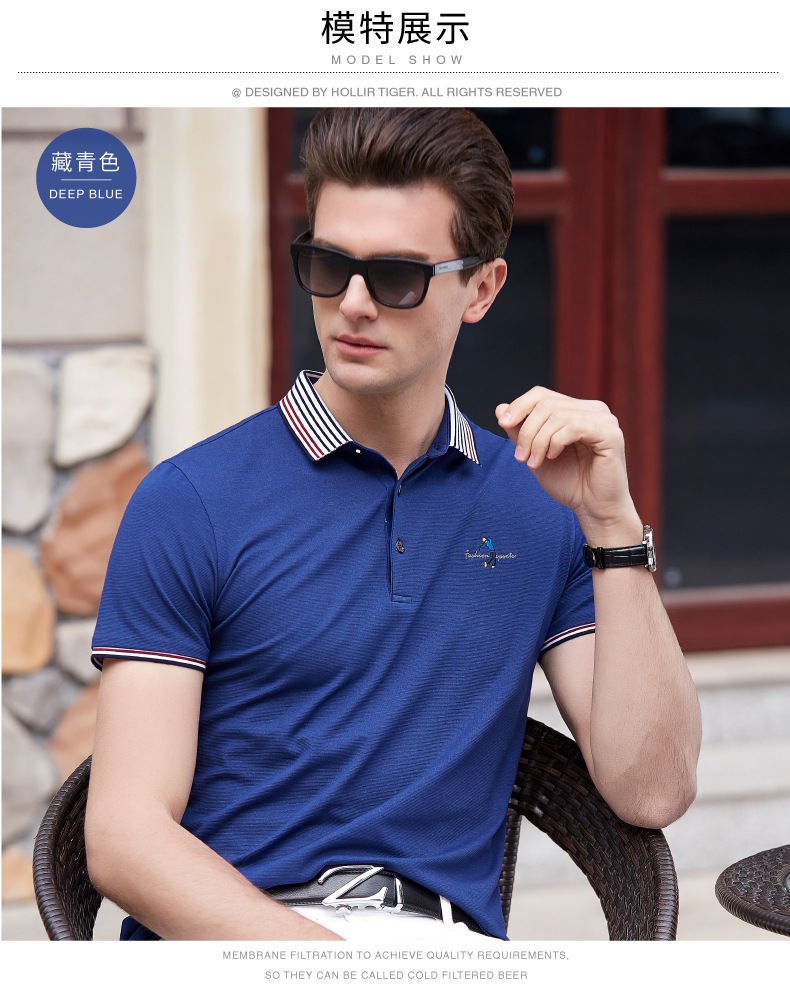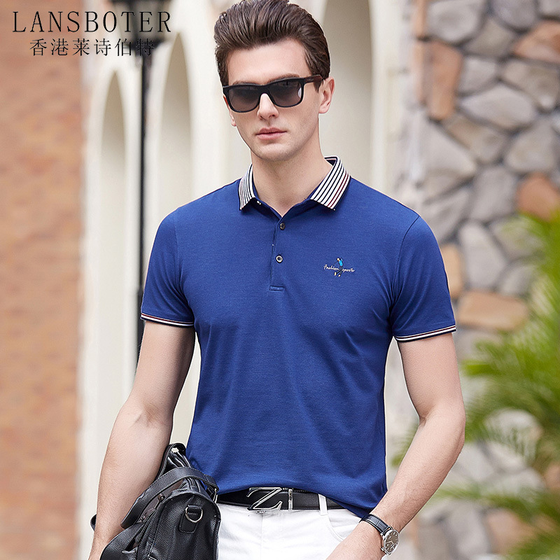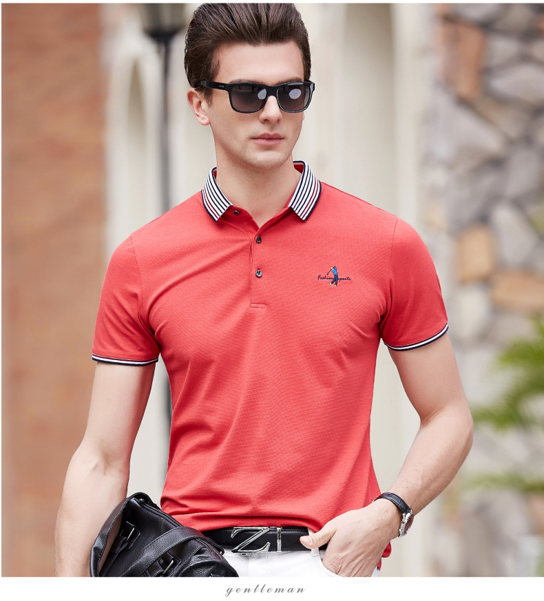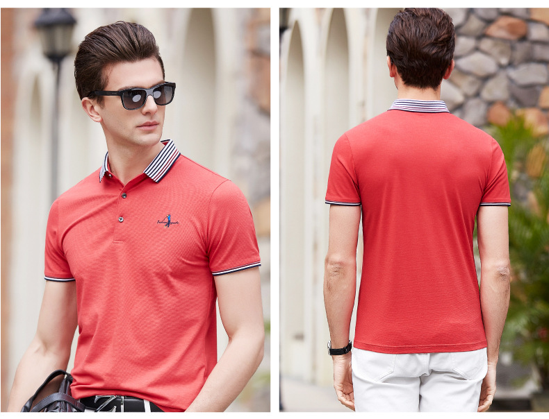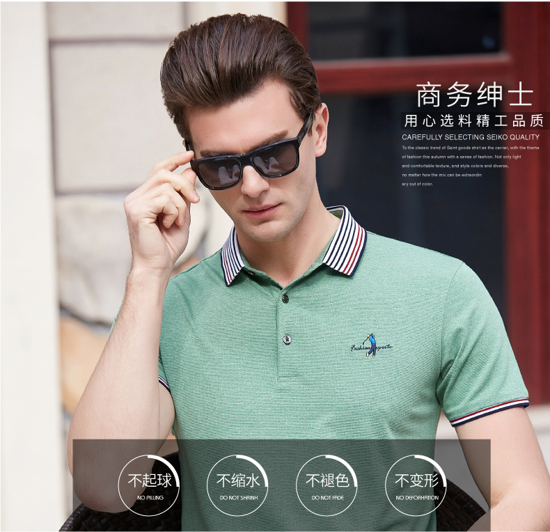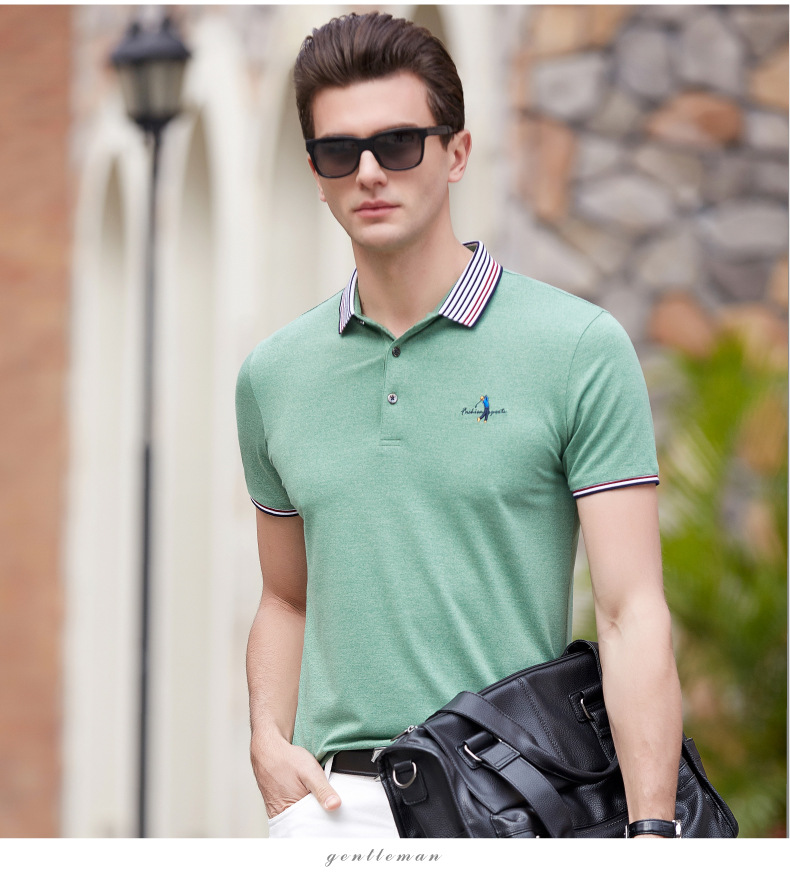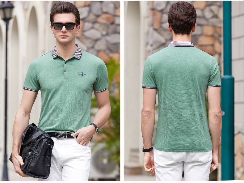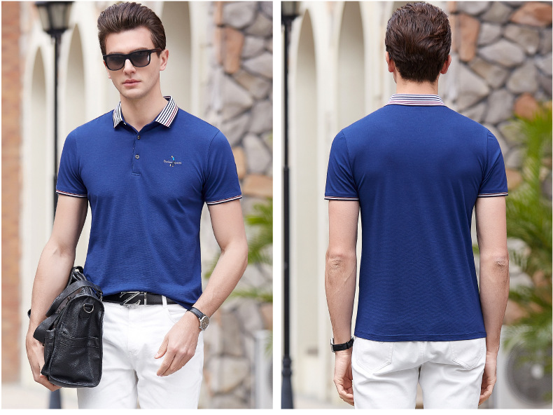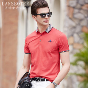 点击查看莱诗伯特2018夏季男式短袖t恤衫休闲纯色男式t恤中青年方领polo衫9091