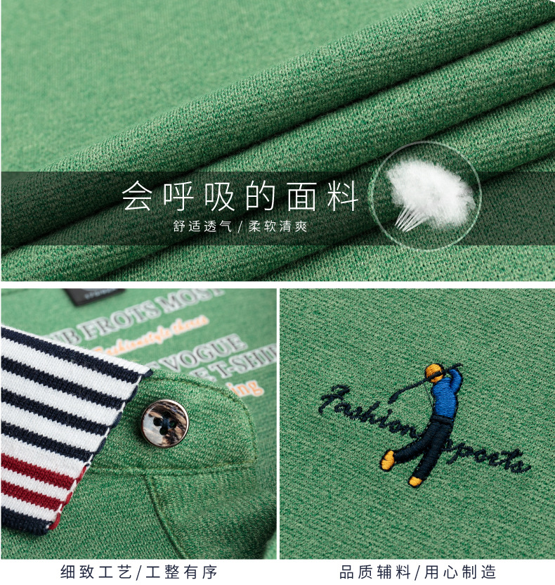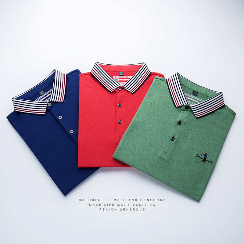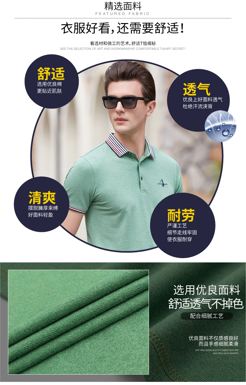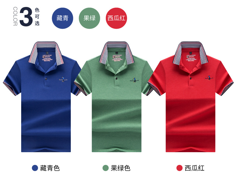 莱诗伯特2018夏季男式短袖t恤衫休闲纯色男式t恤中青年方领polo衫9091