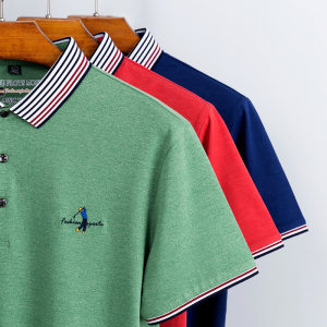莱诗伯特2018夏装新款短袖男式t恤青年条纹体恤衫翻领纯棉男士T恤8067