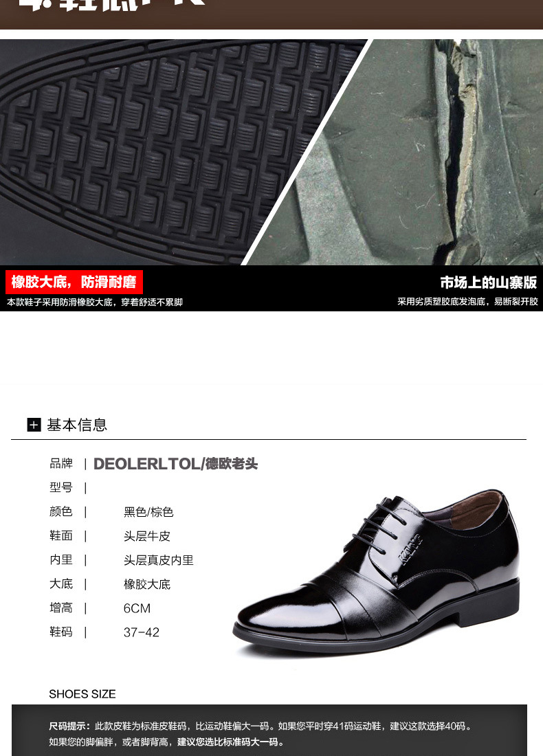 点击查看德欧老头 秋季新款内增高男鞋 男士商务正装皮鞋低帮透气单鞋子潮 D5771
