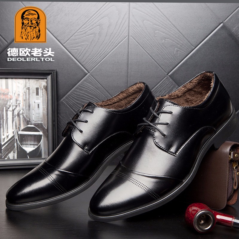 点击查看德欧老头 秋冬加绒保暖男士正装商务皮鞋 英伦真皮尖头男鞋系带工作单鞋 1212-1