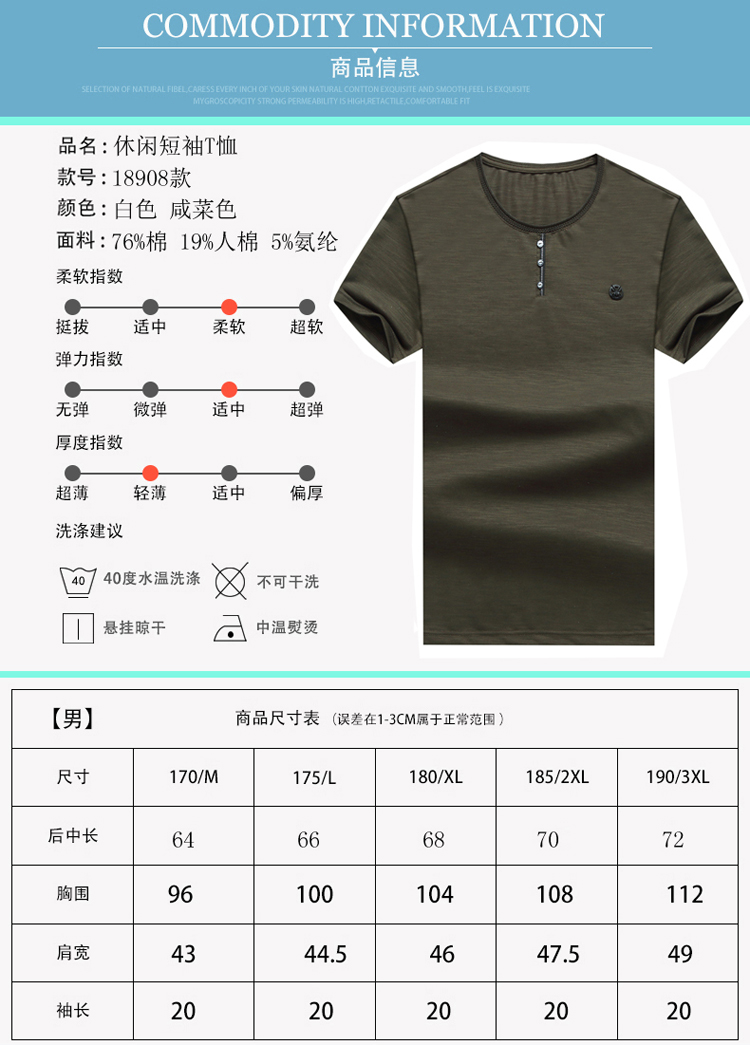 点击查看2018夏季新品男士t恤中年男式套头衫修身圆领男短袖t恤衫厂家直销